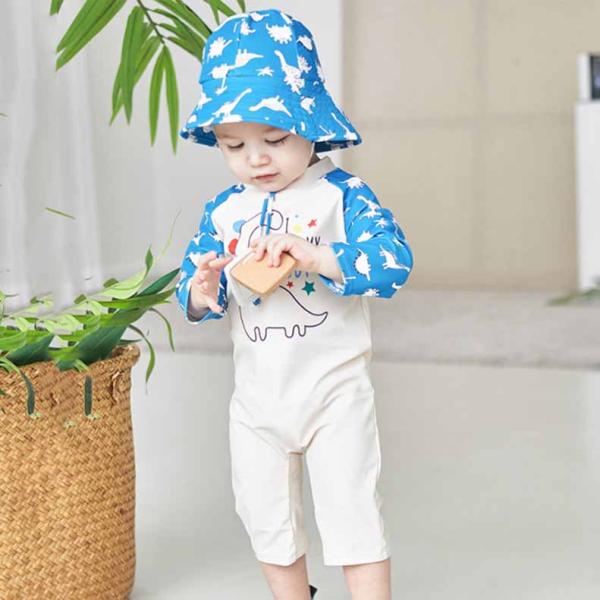 ベビー水着キッズキャップつき 2点セットUVロンパース女の子男の子子供ジュニアベビースイミングラッシュガード スイムウェア 海プール ビーチ 紫外線対策