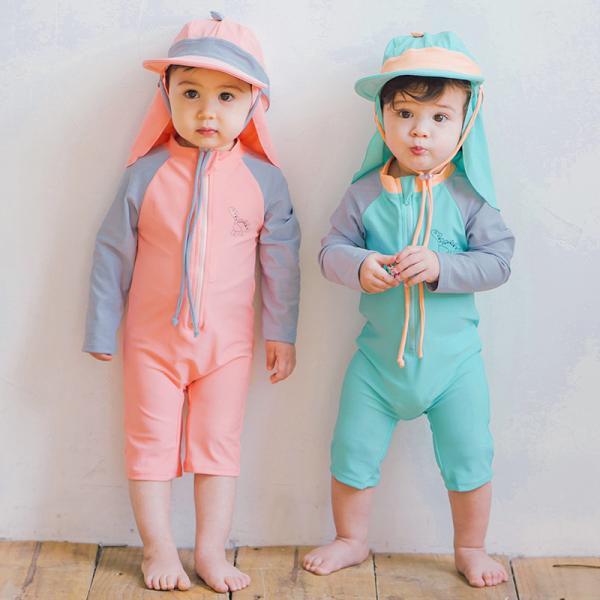 ベビー 水着 ロンパース水着 長袖ラッシュガード 60 70 80 90 100 ジップアップ 長袖長ズボン 女の子男の子 ベビースイミング