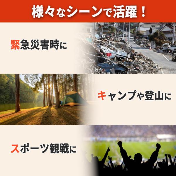 コンパクトにたたまれているため、バッグや防災リュック、車の中などに常備でき、 持ち運びやすく場所を取りません。