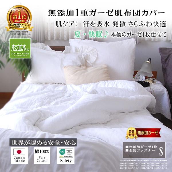 肌掛け布団カバー シングル 140×190cm 綿100% 軽い 肌に優しい元祖無添加ヌーディコットン1枚ガーゼ 松並木 日本製 エコテックス 敏感肌 丸洗いOK