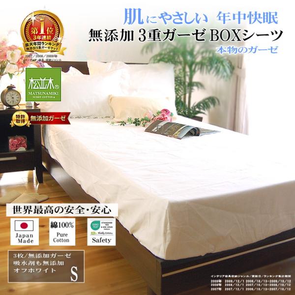 ボックスシーツ シングル 100×200×30cm ベッド用 マットレスカバー ゴム留め 肌に優しい元祖無添加 ヌーディコットン3重ガーゼ 綿100% 国産 松並木 敏感肌