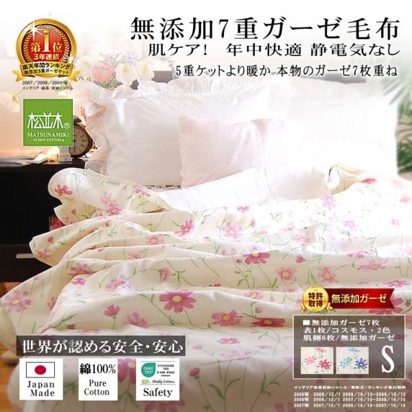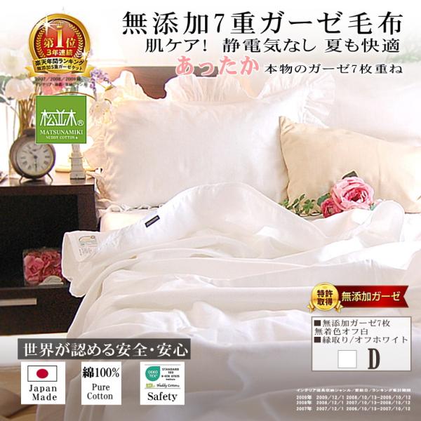 綿毛布 ダブル 190×210cm 縁取りオフホワイト 元祖無添加ヌーディコットン7重ガーゼケット 吸水速乾 綿100% 日本製 松並木 敏感肌 エコテックス アトピー