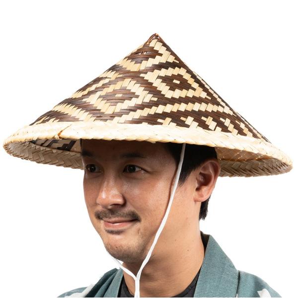 模様入り竹笠 (大人用サイズ) ゴトク・あご紐付き