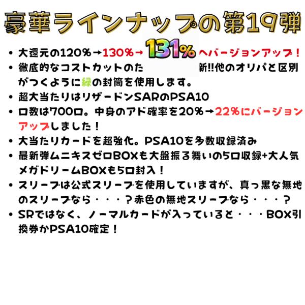 当店の中で最もおススメしている商品につけるマークです。今回も超豪華内容なのでシングルカードのオリパとしては初のチャンスマーク付与です。