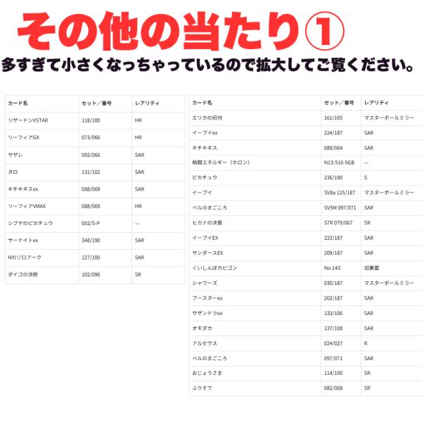 150枚以上の中当たり以上が入っております。全部を記載したかったのですが、載せる場所がなくなっちゃいましたので一部だけ公開しました!