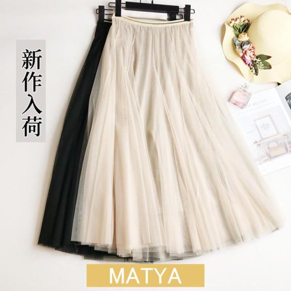スカート チュールスカート ロングスカート フレアスカート ウエストゴム フリル ボリューム