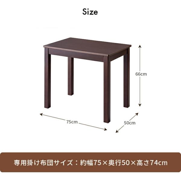 デスクこたつ 2点セット ハイタイプ 1人用 75×50cm こたつテーブル こたつ布団 高脚こたつ ダイニングこたつ パーソナル 勉強机 パソコンデスク 省スペース