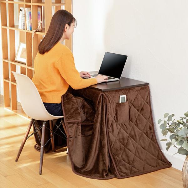 冬はこたつとして、春から秋は布団を外してスマートなパソコンデスクや学習机として活躍します。椅子に座ったまま温まれるため、立ち座りがスムーズ。一人暮らしの方から受験生、ご年配の方まで幅広く重宝します。