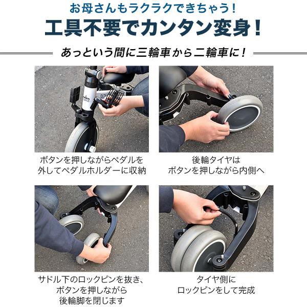 三輪車を折りたたんで二輪車に変身!