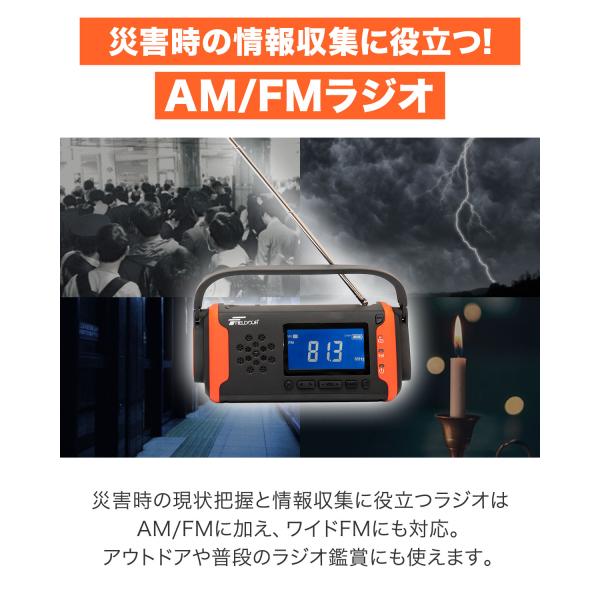 防災ラジオ 多機能 小型 高感度 手回し ソーラー 乾電池 スマホ充電 USB充電 AM/FM ラジオ LEDライト SOS 大容量 5800mAh FIELDOOR 1年保証 送料無料