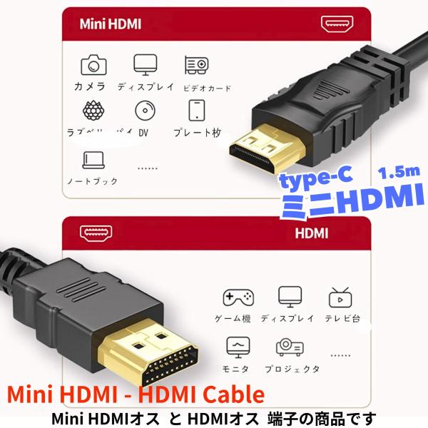 Mini HDMIケーブル 1.5m(Cタイプ⇔Aタイプ)金メッキ仕様