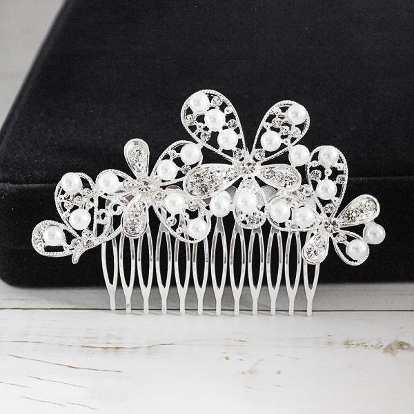 髪飾り 和装 留袖 シルバー パール 結婚式 発表会 かんざし ヘアアクセサリー 50代 60代 成人式 着物 コーム 卒業式 黒留袖 花嫁 ヘアピン 浴衣 花 白