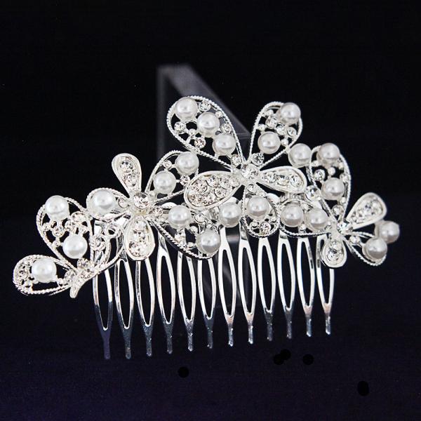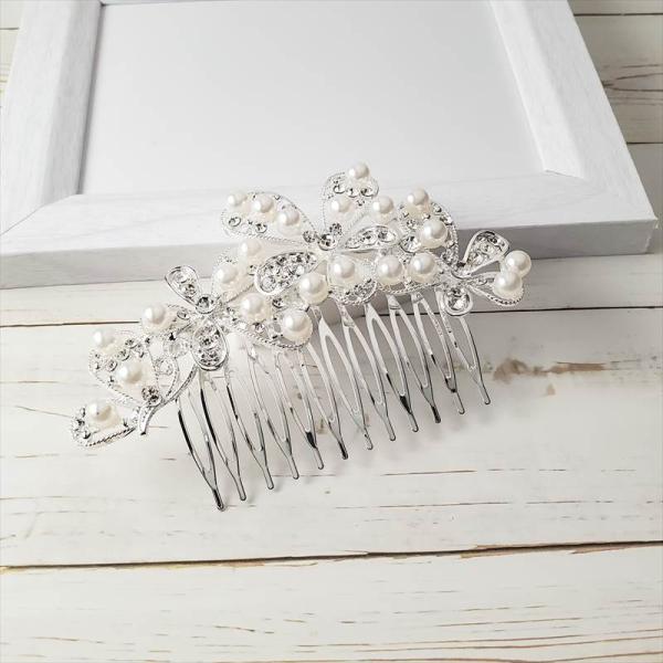 丁寧にはめ込まれたパールとビジューのヘアコーム♪