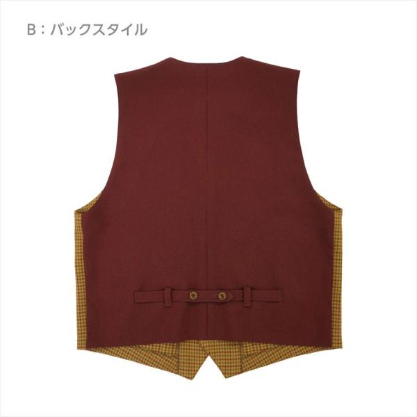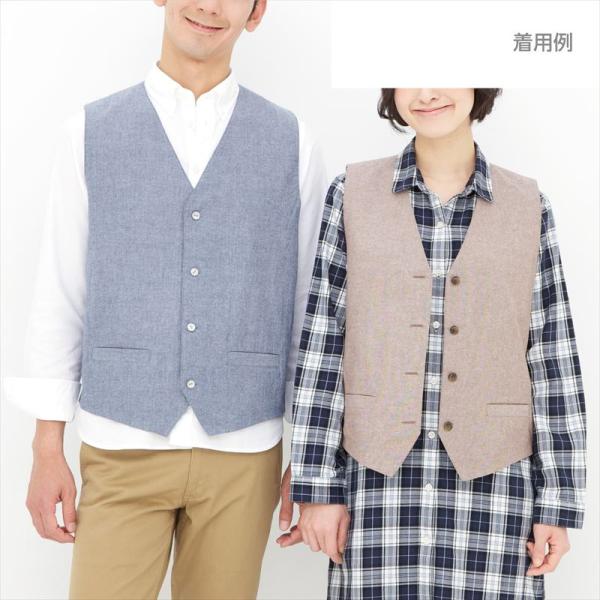 前身頃に簡単なつくり方の箱ポケットと後ろ身頃のベルトで目線が上がり、男女共にバランスが取りやすい着丈のクラシカルなベスト。