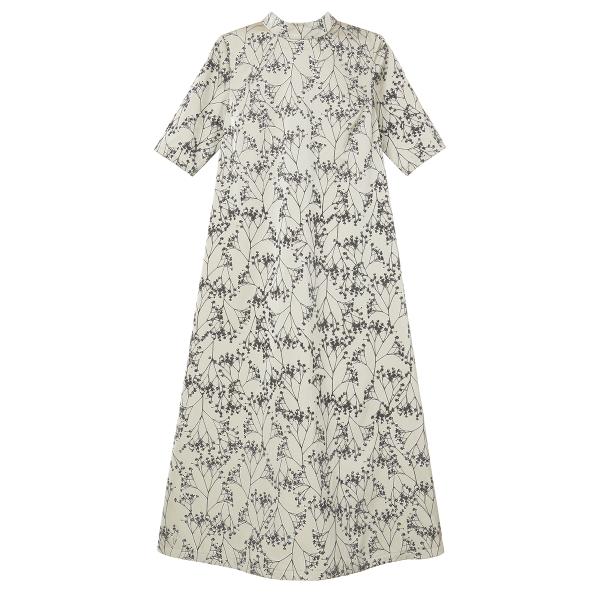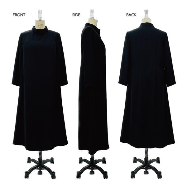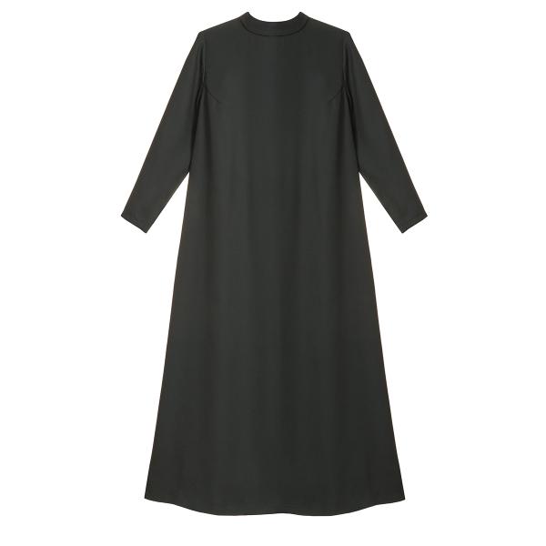 ハイネックでクラシカルな雰囲気のAラインロングワンピース。