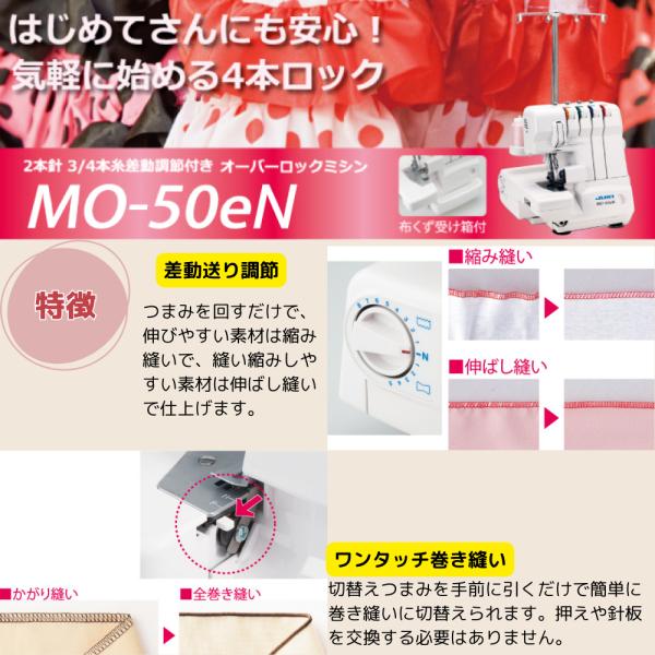 ロックミシン 初心者 ミシン juki MO-50eN 本体 初心者 ジューキ 2本針 3/4本糸差動調節付きオーバーロックミシン 5年保証 送料無料