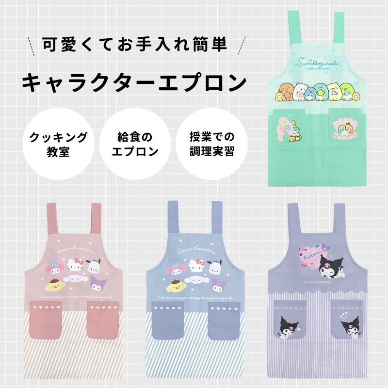 キッズエプロン キャラクター 130 150 すみっコぐらし クロミ サンリオ シナモロール ハローキティ 子供 エプロン ノーアイロン H型 すみっこ キッズ 送料無料