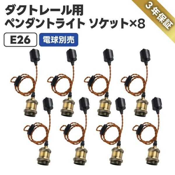 ペンダントライト E26 8個セット LED対応 ダクトレール用 おしゃれ 天井照明 コード長100cm調節可能 裸電球用 吊り下げ ソケット ライティングレール照明 レトロ