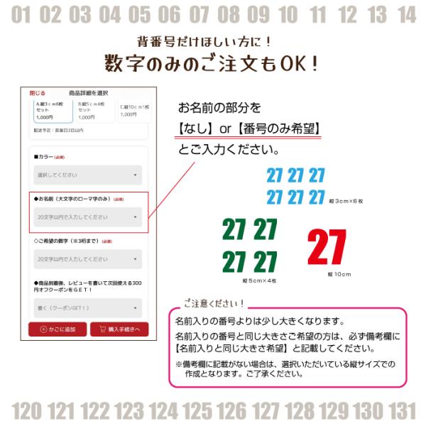 【サイズ違いセットが新発売!】背番号風お名前ステッカー