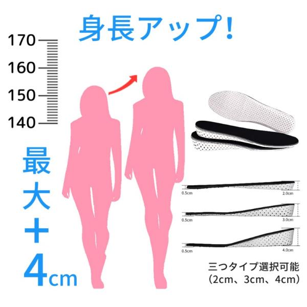 シークレットインソール 中敷き 身長 脚長 バレない 軽量 低反発 通気性 衝撃吸収 フリーサイズ メンズ レディース 2足(2ペア)セット