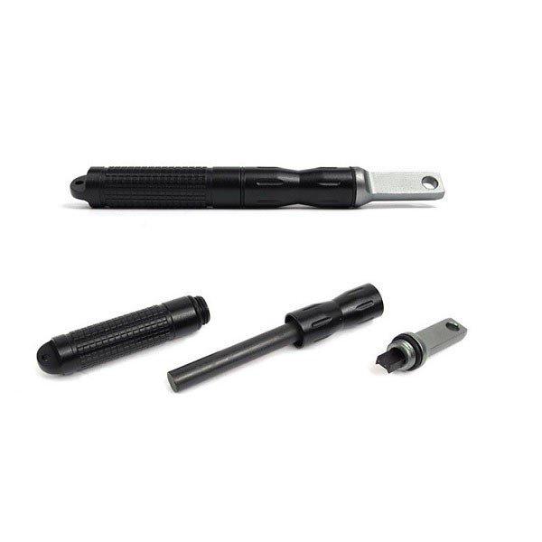 1.ロッド部分に付属のストライカーをスライドさせて削り、マグネシウムの粉を火口の上に集める