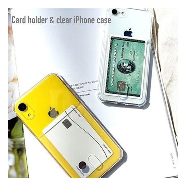 iPhone ケース クリア ポケット付き スマホ 携帯 ケース カバー カード収納 TPU 透明 シンプル 便利 韓国