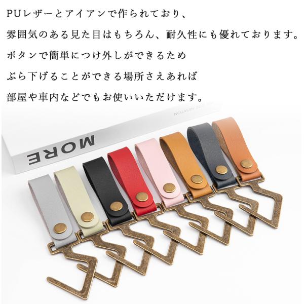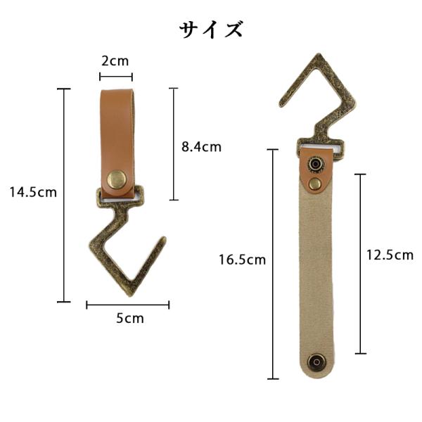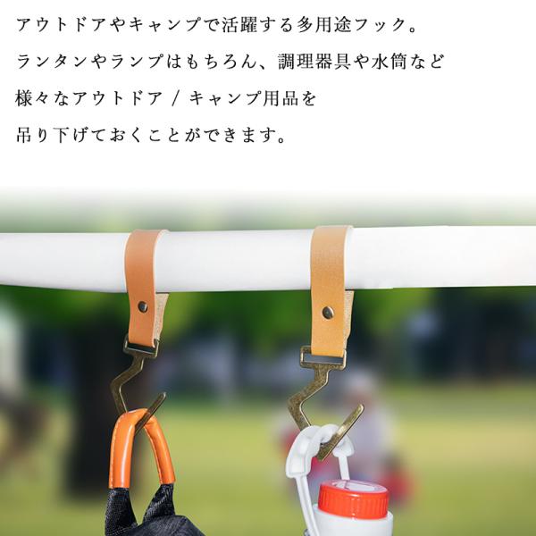 フック 4個セット ランタンハンガー アウトドア キャンプ 屋外 レザー 皮 アイアン 多用途 収納 吊り下げ シンプル おしゃれ かっこいい