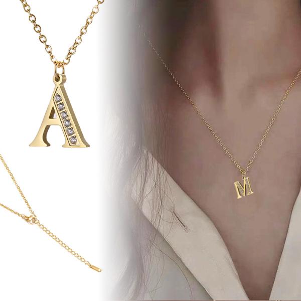 シンプルなイニシャルトップに煌びやかなストーンが上品に輝くゴールドネックレス。