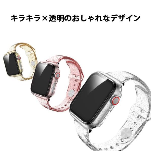 アップルウォッチ Apple Watch キラキラ 一体型 ボタン バンド ベルト ケース カバー 透明 クリア 耐衝撃 韓国 38mm 40mm 42mm 44mm