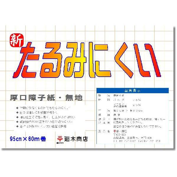【サイズ】 95cm×60m巻◆ 伸縮が少なく、雨の日でもたるみにくい◆ 白さを増してお部屋が明るく◆ 引きが小さく雪見障子にも最適◆ 破裂強さがJIS基準の2.5倍で破れにくい◆ 巻ぐせが残りにくい直径45mmの太い紙管を採用