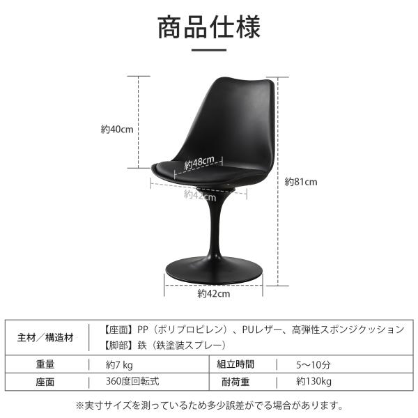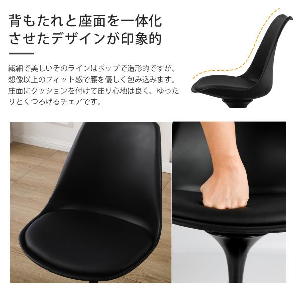 ダイニングチェア イームズチェア pu素材 おしゃれ クッション付き チューリップチェア 360°回転式 オフィスチェア 北欧 シェルチェア 椅子 白 黒 1脚