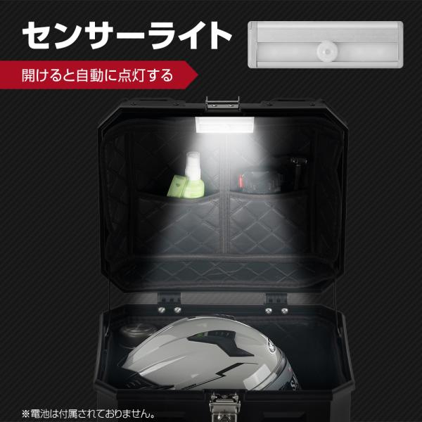 バイク用リアボックス 45L 58L おしゃれ 大容量 防水 ABS 軽量 大型 バイク リアボックス バイクボックス センサーライト付 おしゃれ 盗難防止 ブラック