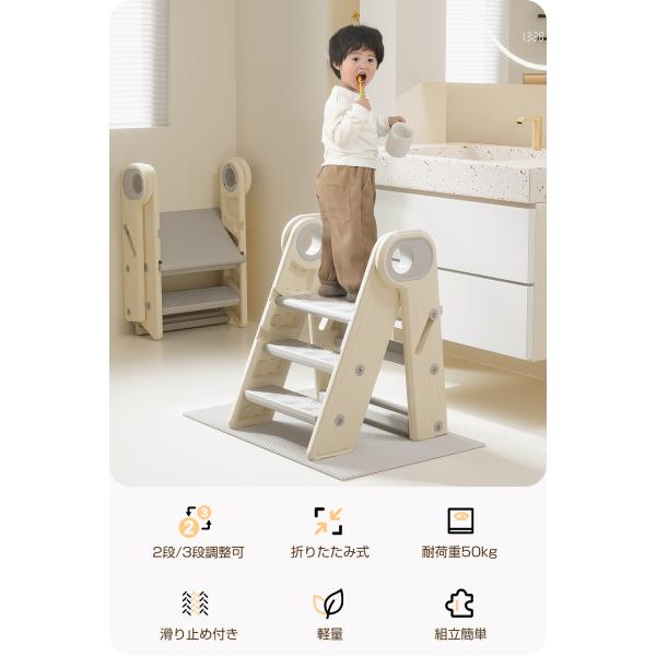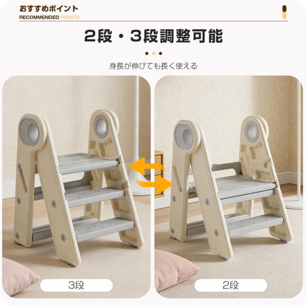 ・成長に合わせた高さ調整:2段・3段の調整が可能なので、お子様の成長に合わせて最適な高さでご利用いただけます。