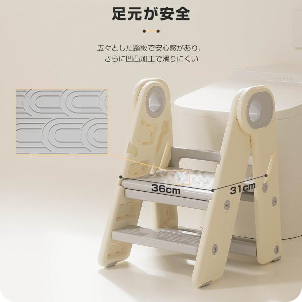 ・安全な足元:広々とした踏板は安心感があり、凹凸加工が施されているため滑りにくく、安全に使用できます。