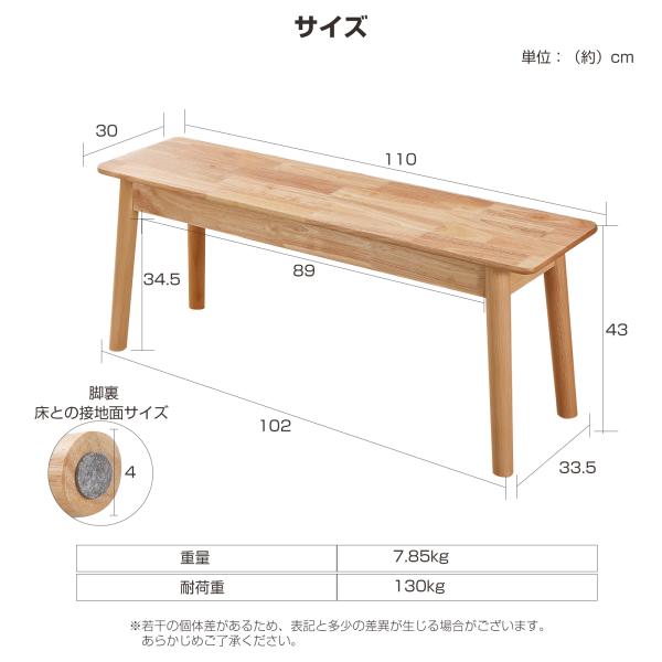 ダイニングベンチ 幅110cm 2人 3人 ベンチ 木製 ダイニングチェア 食卓ベンチ 長椅子 2人用 3人用 イス 北欧 おしゃれ シンプル 天然木 無垢材 玄関 リビング