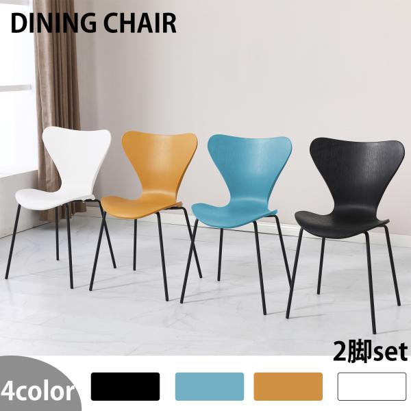 ダイニングチェア セブンチェア スタッキングチェア 2脚 北欧 おしゃれ 黒鉄脚 椅子 いす モダン シンプル リビングチェア デザイナーズチェア 組立簡単 白 4色