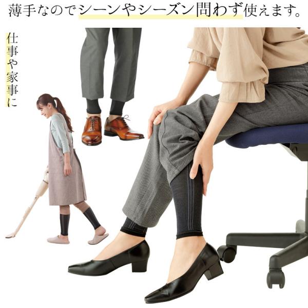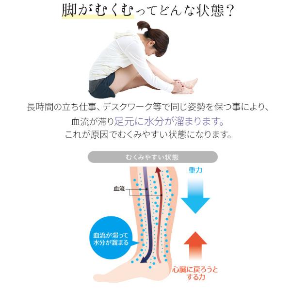 ・脚のむくみ・疲れをスッキリ。着圧機能が血流を改善することで、こむら返り、脚のつり、むくみ等を予防します。