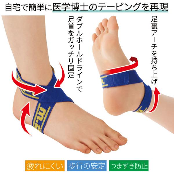 ・スポーツドクター監修の足首固定と足裏アーチの持ち上げを同時にできるテーピングバンド。