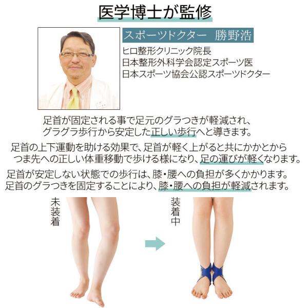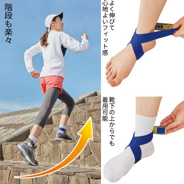 ・8の字テーピング効果で、正しい歩行姿勢と足首の上下運動をサポートします。