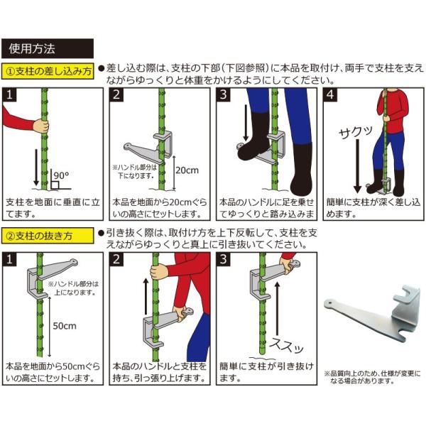 ・家庭菜園・園芸用の支柱のさし込みが踏むだけで力を入れずに楽に出来ます。