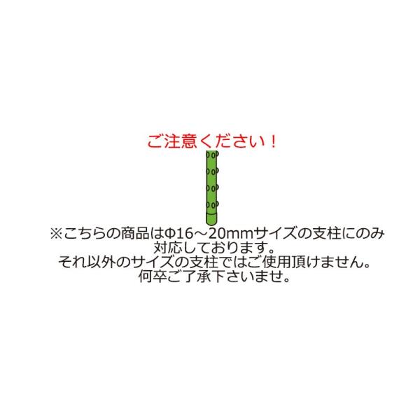 ・Φ16〜20mmのサイズの支柱に対応しており、ハウスや防鳥ネットの支え立てにも大活躍です。