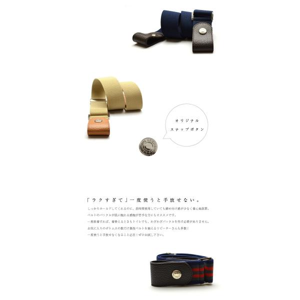腹部への圧迫感もなく、ベルトを外さなくても着替えるのがラクラク♪女性の方にもお使い頂けます。