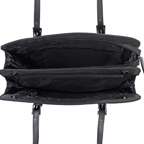 ファスナー付き収納部分はお財布や重要書類など、飛び出しを防ぎたい貴重品入れに。