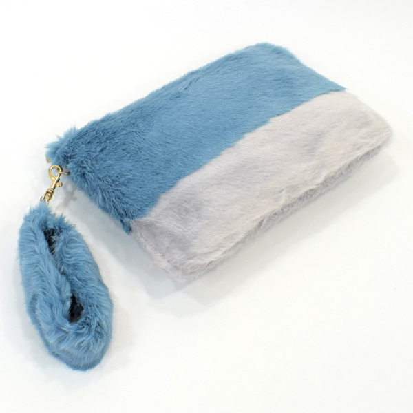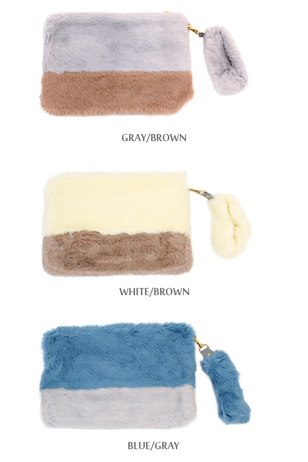 クラッチバッグ ファーバッグ 2WAY ストラップ ポーチ 小物入れ バイカラー フェイクファー エコファー リストレットバックインバック ふわふわ 大人カジュアル