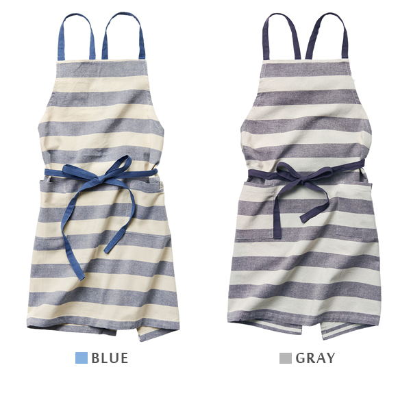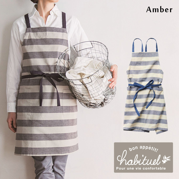 ストライプ柄 ビオ ボーダー柄 アンバー コットンエプロン