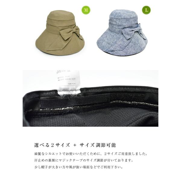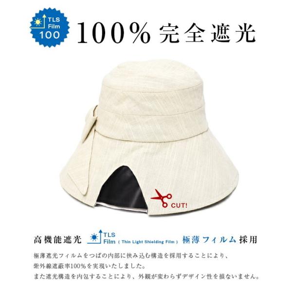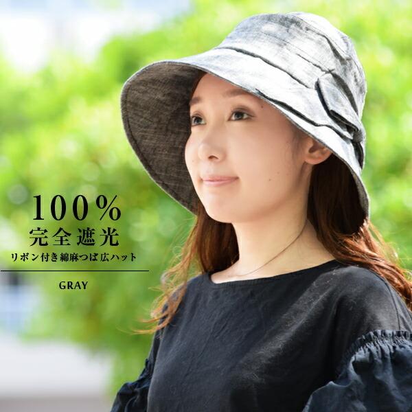 帽子 レディース 遮光 100% 完全遮光 BIGリボン付き綿麻つば広ハット UVカット 帽 遮熱 リボン 綿 麻 自然素材 紫外線対策 サイズ調節可能 熱中症対策