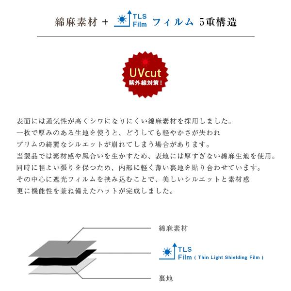 100%完全遮光 BIGリボン付き綿麻つば広ハット