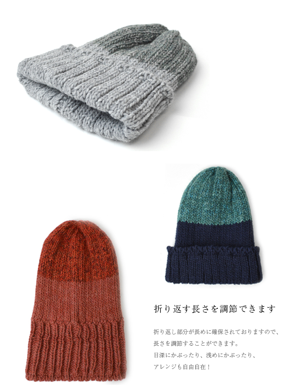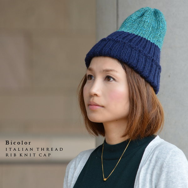 ニット帽 バイカラー リブ編み 帽子 イタリア糸 上質 男女兼用 ユニセックス レディース メンズ キャップ ワッチ ビーニー 折り返し 防寒 シンプル ローゲージ