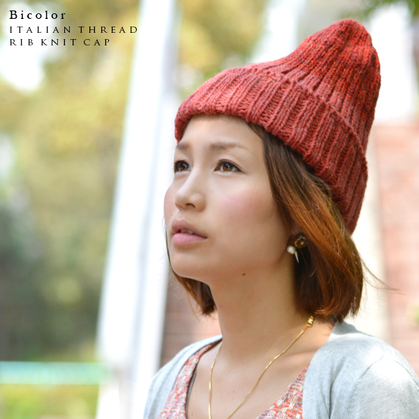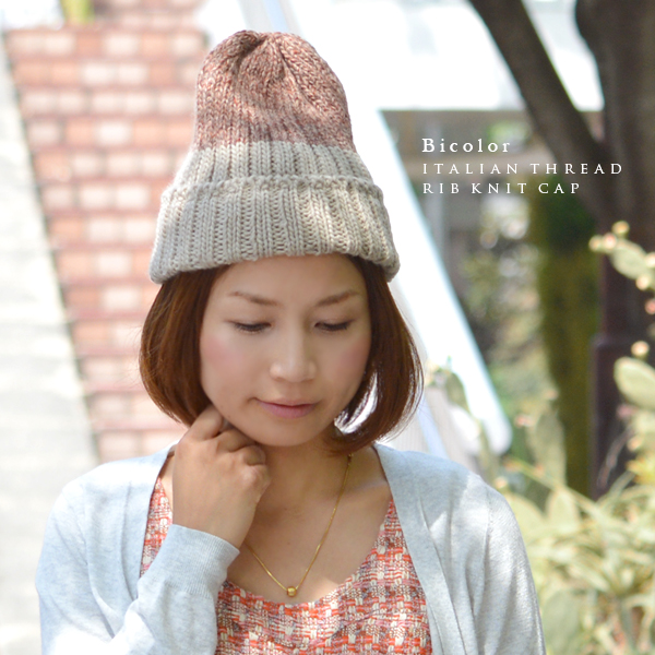 上質イタリア糸使用 バイカラーリブ編みニット帽