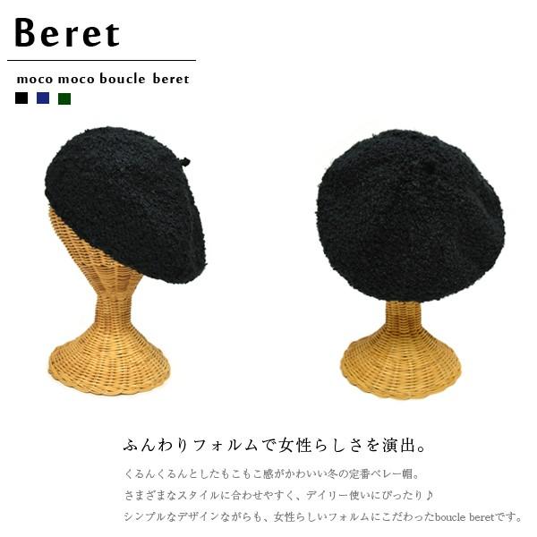 レディース ベレー帽 ブークレ ニット 女性 帽子 ベレー もこもこ ふんわり 無地 シンプル ベーシック 秋冬 可愛い